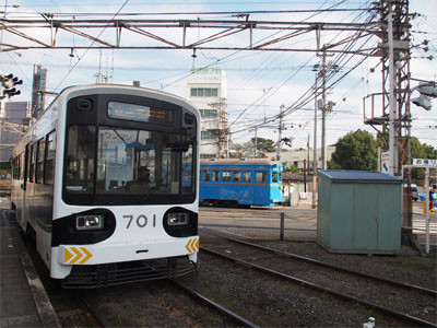 明けましておめでとう。 レイ:そして今年も、アイマジック社には遠慮なく、資料写真投稿(資料テロ)をやらせてもらおう。 そして願わくば、今年こそVRMが『真の意味』で、鉄道模型シュミレーターになってほしいものだ。 (現状のVRMは、正直言ってJR・国鉄シュミレーターと読んでも過言では無いからな) さて早速だが、先ほど年賀状代わりにアイマジック社掲示板に資料投稿をやってきた。 ではコスモス、解説を頼む。 コスモス:はい。 今回のターゲットは…… 大阪・堺を走ります阪堺電気軌道さんです。 勿論、今回の遠征は私達のライフワークとしてやっております、『路面電車補完計画』の一環ですよ。 さて、今回一番の目玉は1001形『堺トラム』……だった訳ですが、11月に接触事故を起こしてしまったらしく、撮影当日までとうとう本線上に復帰する事はありませんでした。 これの屋上を撮影するために望遠レンズまで新調したのに……残念でなりません。 まあ、でも動いていないものは仕方がないので、今回は阪堺さんのもう一つのエースである…… 通常運用に入る車輌の中では国内最古の車輌として著名な、モ161形をメインターゲットに選定。 今回はこれを中心に追う事にしました。 そして撮影の結果を、各形式の写真と一緒に自己採点していきます。 それに併せて、撮影しずらさ故に神秘のヴェールにつつまれた、各形式の屋上写真もついでに貼り付けておきます。 阪堺さんの車輌の鉄道模型を作りたい……と思っている方が一番欲しいと思っている写真は、恐らくはこの屋上写真だと思いますので。 (なお、もっと大きい画像が欲しい方は、お手数ですが投稿先リンクより公式掲示板に飛んでDLしていって下さい) 1.モ701形 両側面:OK 屋上:OK 投稿先リンク 阪堺さんの主力車輌の一つ。全11両いますが、全車両、何らかの形で撮影する事ができました。 うち、両側面と屋上の撮影に成功したのは701・702・703・705・706・708・709・711の8両。 なお、モ701形の屋上機器構成は基本的にこんな感じです。 パンタとクーラーと制御機器という、路面電車の中では標準的な構成です。 ただ、711号だけは、他の車輌とはクーラーの形状が異なっていましたし…… 704・706はパンタ形状が他の車輌とは異なっていました。 2.モ601形 両側面:OK 屋上:OK 投稿先リンク 阪堺さんの主力車の片割れ。モ701形が良く遭遇したのに対し、こっちはあまり遭遇しませんでした。 (11両あるモ701に対し、こっちは7両なので当然といえば当然ですが) そして、両側面と屋上の撮影に成功したのは601・604・607の3両でした。 (601の左側(海側)は、斜め屋上からの側面撮影という形で撮影成功扱い) なお、モ601形の屋上機器構成はこんな感じ。 モ701形とは、クーラー左隣にあるクーラー制御機器(らしきもの)の形状が異なります。 風の噂では605号のみ、他の車輌とはパンタ形状が異なるらしいですが、撮影期間中は一度も遭遇しませんでした。 3.モ501形 両側面:OK 屋上:OK 投稿先リンク 阪堺さんの一般車輌の中の一つ。 モ161形や堺トラムと比較しても余り注目されない形式ではありますが、いわゆる『和製PCCカー』の数少ない生き残りです。 そして、頼んでも無いのに全車両の両側面と屋上写真をGETする事に成功。 なお、モ501形屋上構造の『基本形状』はこんな感じ。 パンタの周りにある木枠など、シンプルだったモ601やモ701と比較しても結構複雑な構成をしています。 ですが、502号(都電塗装)だけは、木枠その他が撤去されて、他の車輌と比較するとかなりシンプルな構成になっていました。 (もっとも、502号はこれ以外にも前面方向幕のLED化や車内へのディスプレー設置など、かなりの改造が施されていました) 4.モ351形 両側面:OK 屋上:OK 投稿先リンク 阪堺さんの一般車輌の中で唯一、吊り掛け駆動で走り回っている形式がこの351形です。 撮影時には殆ど運用に入っておらず、モ161形並みか、それ以上のレア度を誇っていましたが、それでも354号のみは両側面・屋上を抑えることができました。 ただ、この354号、昨年12月までは大阪市電色だったので出来ればそっちをおさえたかったのですが…… 直前に広告塗装車に変えられてしまいましたので、それはかなわぬ夢となってしまいました。 (現在のこの広告塗装も、それはそれで洗練されて良いとは思いますが) なお、351形の屋上構造はこんな感じ。 改造が入った502号に似て、シンプルな構造をしています。 (もっとも、本形式の他車がどうなっているのかは今回の撮影ではわかりませんでしたが) 5.モ161形 両側面:OK 屋上:OK 投稿先リンク さて最後はお待ちかね、通常運用に入っている車輌の中では国内最古という称号を持つ阪堺さんのエース、モ161翁の登場です。 行くまでは『撮影期間中、ずっと全車両・車庫で昼寝だったらどうしよう』という不安にかられていたのですが…… 行って見ると、少なくとも天王寺~浜寺系統には毎日1両は必ず運用に入っていたので安心しました。 (えびす町~我孫子道系統には全く