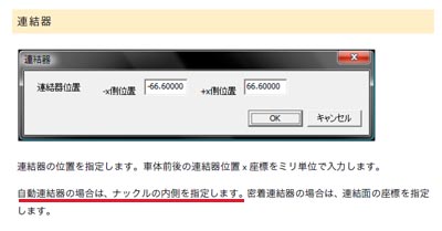 で、自動連結器の場合に指定する「ナックルの内側」とは…